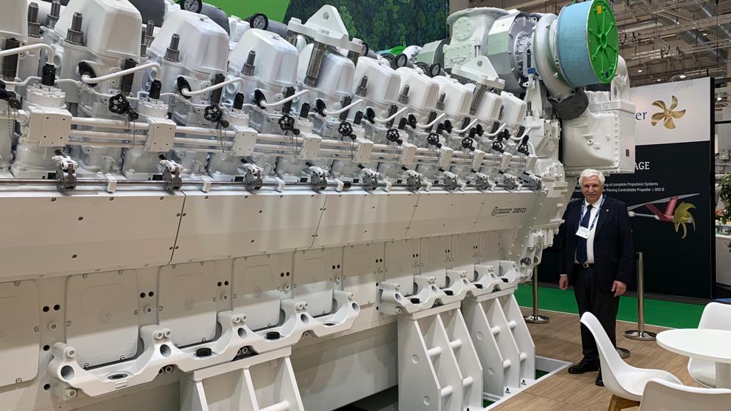 El mismo Antonio Solimeno, nos acerco material fotográfico de los diferentes Stand, recorridos observando motores mas comprometidos con el medio ambiente, de gran potencia y una sustancial reducción de tamaño, como ese potente 10cilindros de 9000KW. Otro punto relevante en nuestro dialogo, es la inserción de motores de Hidrogeno cuya emisión tiende a cero, algo que por ahí Argentina esta distante pero que ya comienza a hacer punta en buques, motivando que las principales terminales del comercio mundial comiencen a instalar la logística para ese limpio combustible.