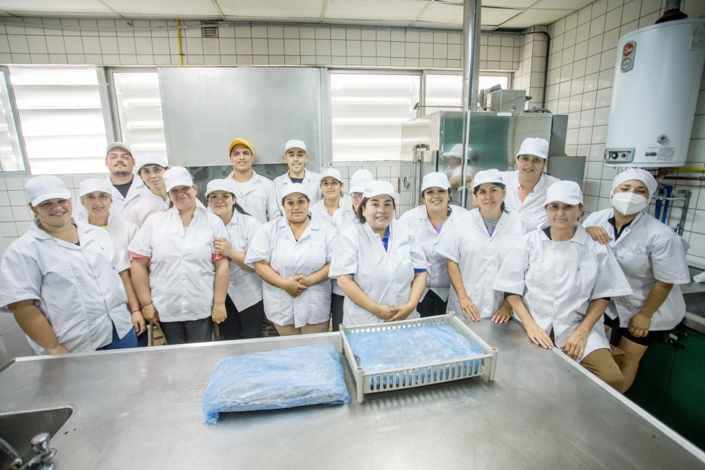 De la misma manera que sucedió al finalizar el primero de los cursos, el pescado que se fileteó y que posteriormente se congeló, en la clase que dio el cierre al ciclo, los egresados lo entregaron en la Escuela Primaria nro. 12, para que los alumnos que a diario almuerzan allí, pudieran degustar filet de merluza con puré y así conocer aún mas y valorar el noble producto del mar.