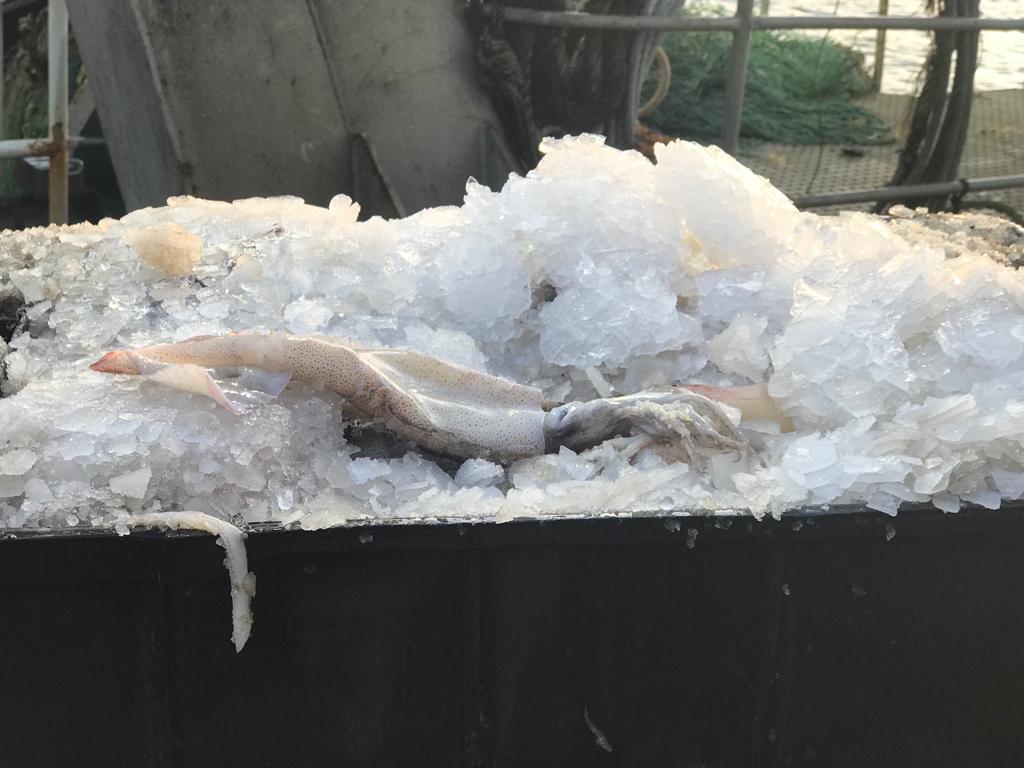 Así es que el BP Antonia D, llegando en la madrugada de hoy a las 05:30hs, con la bodega completa de calamar de muy buen tamaño pudo finalizar la marea en solo 4 días, por cuanto el calamar, con buena cantidad de hielo y bien trabajado compite con creces en números con el langostino.
