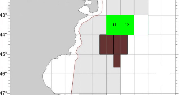• Subárea 12: entre los paralelos 43° y 44° S y los meridianos 62° y 63° O.