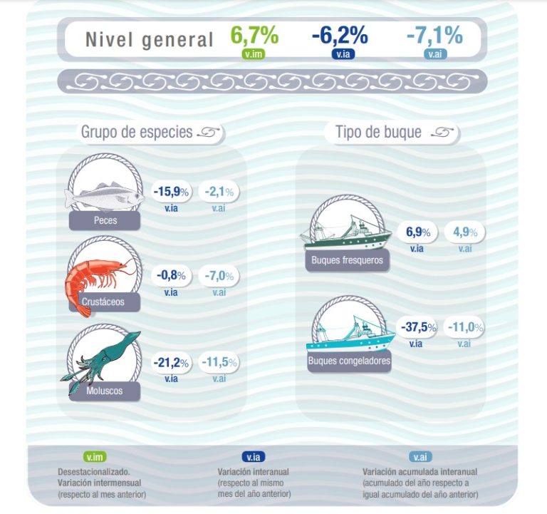 En tanto el grupo 鈥淢oluscos鈥 present贸 una disminuci贸n del 21,2% respecto a igual mes del a帽o anterior.