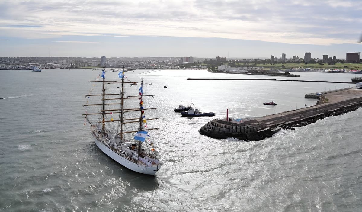 El espíritu náutico de Mar del Plata se expresó con fuerza en el mar. En un acto tan espontáneo como simbólico, al menos 35 buques a vela recreativos, acompañaron la maniobra de ingreso, componiendo una escolta viva junto a embarcaciones del Centro Naval Mar del Plata, el Yacht Club Argentino, el Club Náutico Mar del Plata y el Club Motonáutico. La ciudad, habituada al trabajo portuario cotidiano, se permitió por unas horas una celebración distinta, la de la tradición marinera que no se mide en toneladas ni en exportaciones, sino en pertenencia, historia e hidalguía todo junto en un mismo navío.