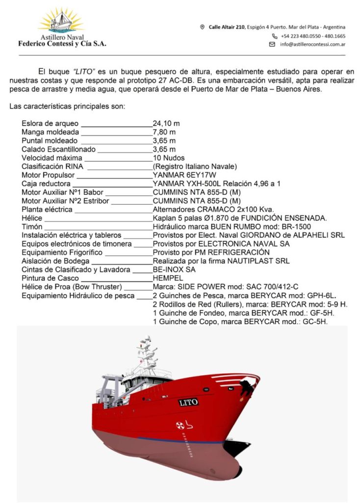 El Lito se presenta como una embarcación versátil y bien equipada para enfrentar los desafíos de la pesca en el Atlántico Sur, garantizando eficiencia, seguridad y durabilidad en cada faena.