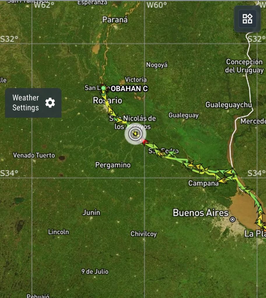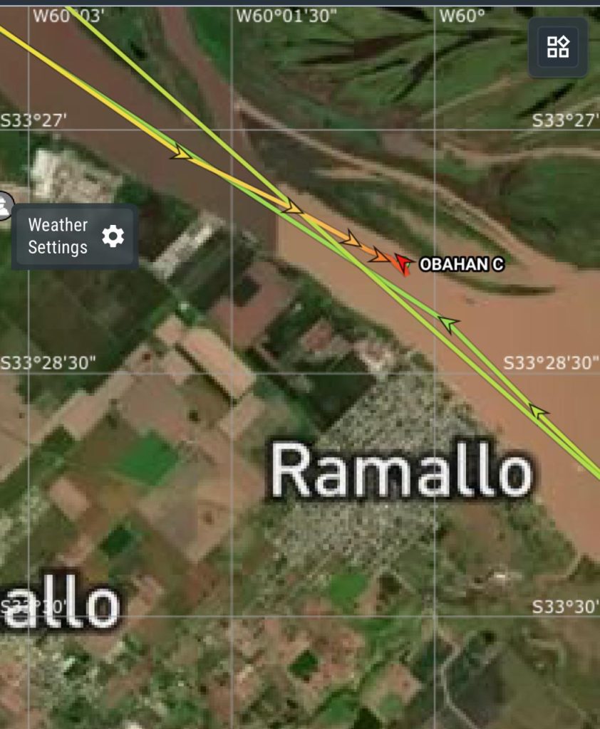 Ante esta situación, la Prefectura Naval Argentina dispuso el fondeo de los graneleros en puntos cercanos a Ramallo y San Nicolás. El Nord Singapore se encuentra en la Rada Norte de San Nicolás (Km. 349), mientras que el Obahan C está en la Rada de Ramallo (Km. 325).