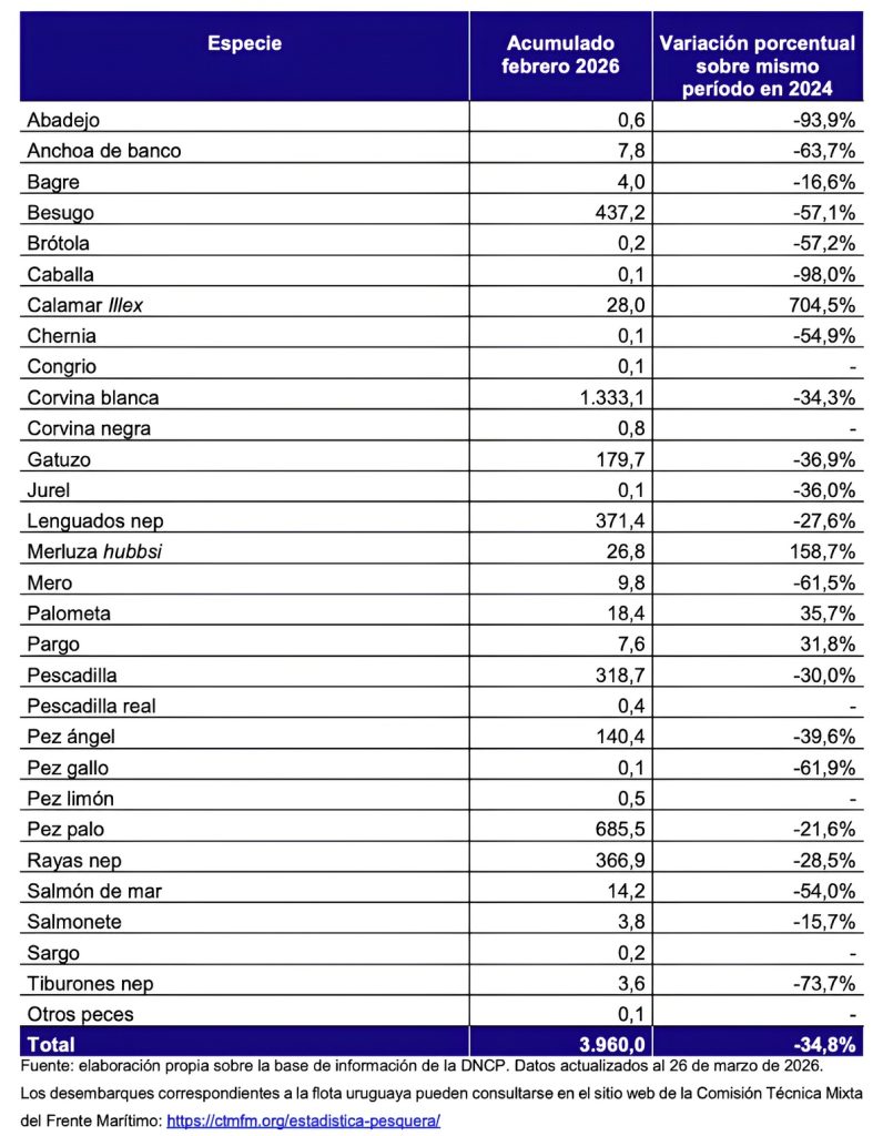 El Informe de Coyuntura Pesquera de febrero 2026 permite trazar una radiografía precisa del comercio exterior del sector, con datos concretos sobre volúmenes, divisas, productos y destinos, en un escenario que combina recuperación en el acumulado del año con cierta estabilidad en el comportamiento mensual.