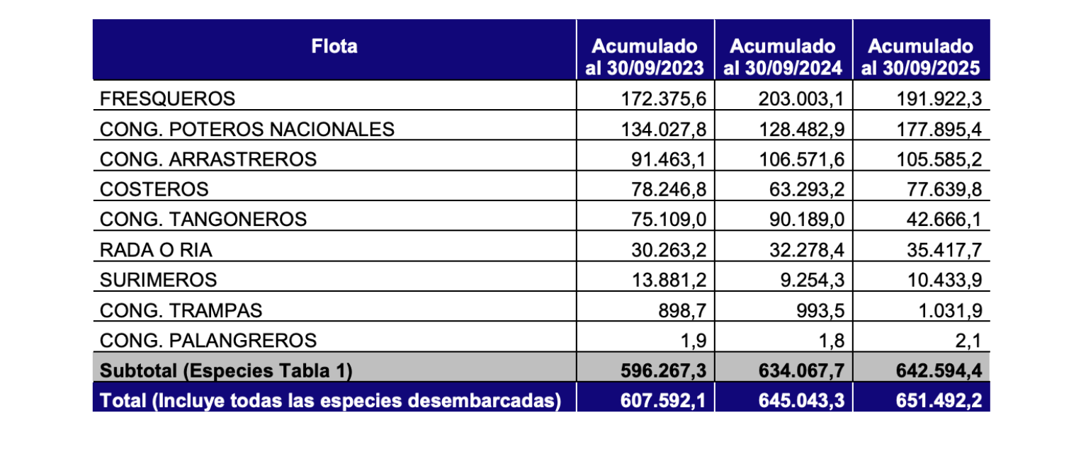 Según el Informe de Coyuntura Pesquera de Septiembre 2025 publicado por la Dirección de Planificación Pesquera (DPP), los desembarques totales alcanzaron 66.845 toneladas, un aumento del 15,1% respecto al mismo mes de 2024.