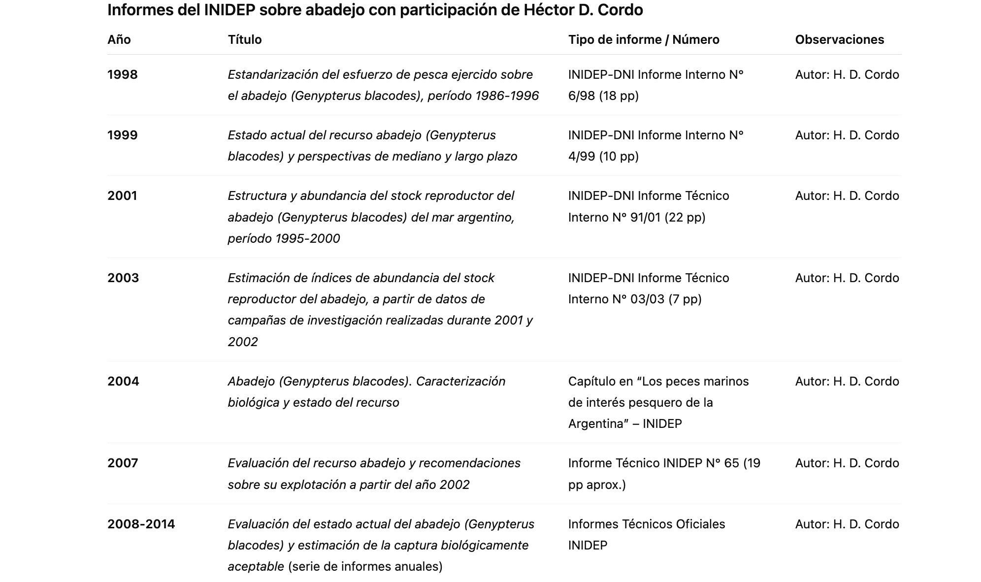 Algo que se había discontinuado desde la salida del biólogo e investigador Héctor Darío Cordo, dedicado al estudio de la biología pesquera, la dinámica de poblaciones de peces demersales y el análisis de recursos marinos en aguas argentinas, principalmente polaca y abadejo.