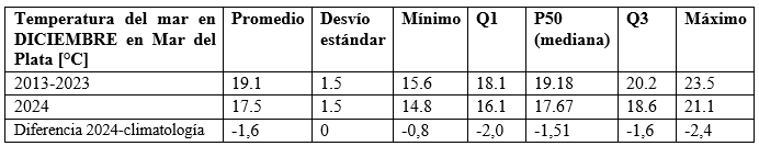 La persistencia de estas condiciones climáticas generó un marcado contraste con los registros históricos, posicionando a diciembre de 2024 como uno de los meses más fríos en términos de temperatura superficial del mar en la última década.