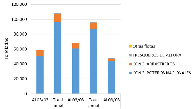 Si bien en los muelles se acumularon 47.665 toneladas hasta el pasado 3 de marzo, de acuerdo a datos preliminares de la Subsecretaría de Pesca de la Nación, la baja es del 30 por ciento en relación al mismo período del año pasado.
