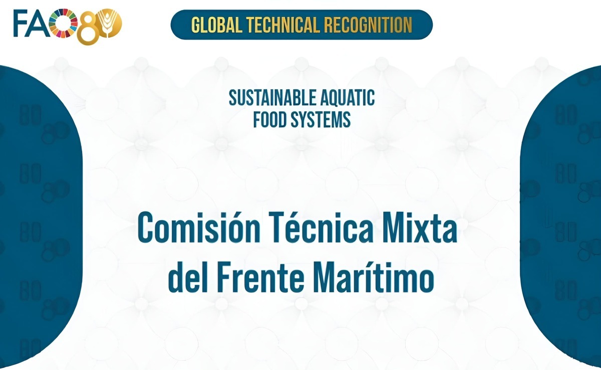 La FAO distingui贸 a un conjunto de instituciones de todo el mundo por sus pr谩cticas innovadoras y efectivas en la transformaci贸n de los sistemas agroalimentarios, dentro del marco de su 80掳 aniversario y del Foro Mundial de la Alimentaci贸n 2025. Entre ellas se destac贸 la Comisi贸n T茅cnica Mixta del Frente Mar铆timo (CTMFM), seleccionada en la categor铆a 鈥Sistemas acu谩ticos alimentarios sostenibles鈥.