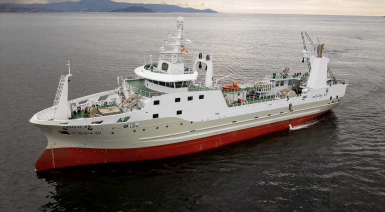La flota que opera en aguas malvinenses está compuesta por 17 buques de capital compartido entre empresas de Vigo y el gobierno de las islas. Este año, se incorporó el buque Hadassa Bay de la empresa viguesa Copemar, construido en el astillero RÃa de Vigo, en reemplazo del Baffin Bay, que se hundió tras un incendio en el puerto de Bouzas. El Hadassa Bay es el mayor arrastrero construido en los últimos 40 años, que ha sido diseñado para albergar una tripulación de 65 personas de los cuales 42 pertenecen a la marinerÃa alojados en camarotes de solo dos personas. En estos momentos con problemas en su motor principal ABC y probablemente a remolque al puerto de Montevideo.