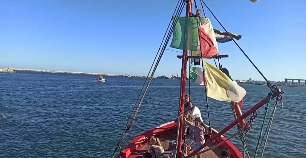 La imagen de San Salvador fue colocada en el “Don Mario”, adornado para la ocasión, donde una bandera recordó también a Adrián Vuoso –desaparecido en el mar trágicamente- luciendo los colores de su amado club Banfield.