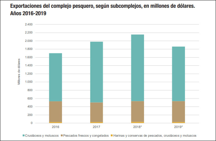 Durante 2019, el comercio exterior de la industria pesquera generó 1.863 millones de dólares, el 2,9 por ciento del total.