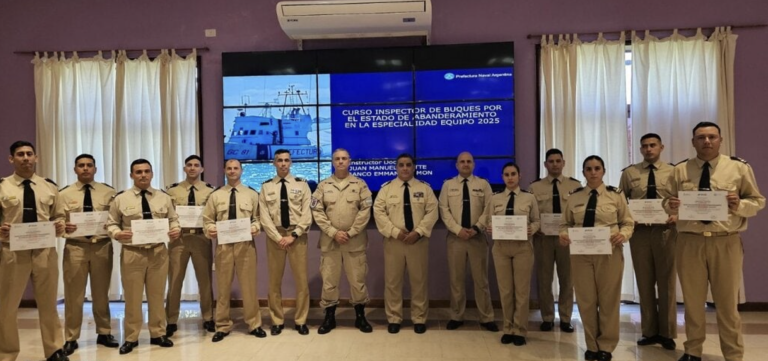 El curso tuvo como objetivo principal la formaci贸n t茅cnica de los efectivos para llevar adelante inspecciones a bordo de buques inscriptos en la Matr铆cula Mercante Nacional, que navegan en aguas jurisdiccionales y requieren la extensi贸n, renovaci贸n o convalidaci贸n de certificados nacionales e internacionales de seguridad.