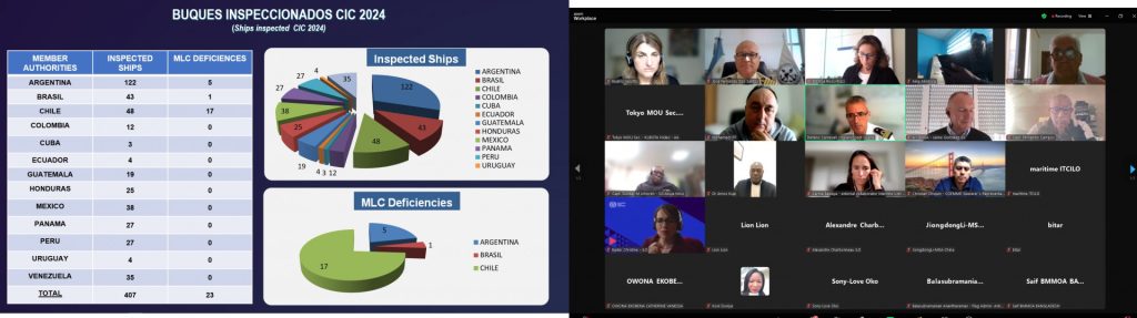 Durante el foro, los panelistas discutieron el papel fundamental de los acuerdos regionales y las Campañas de Inspección Concentradas (CIC) en la aplicación del MLC 2006. Estas campañas son cruciales para evaluar y mejorar las condiciones laborales en el sector marítimo. El prefecto mayor Dos Santos presentó avances sobre la Campaña de Inspección Concentrada 2024, que se centra en los salarios y acuerdos de empleo de la gente de mar, y que se lleva a cabo en Latinoamérica del 1 de septiembre al 30 de noviembre.