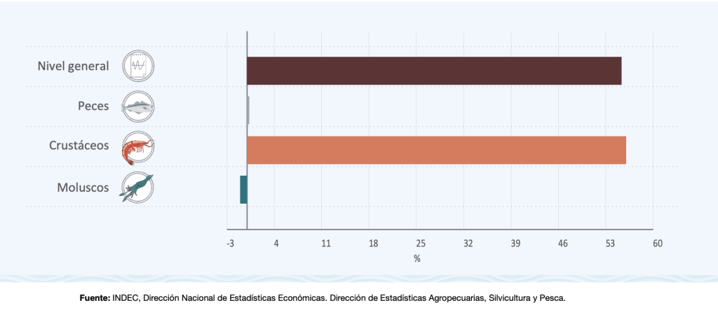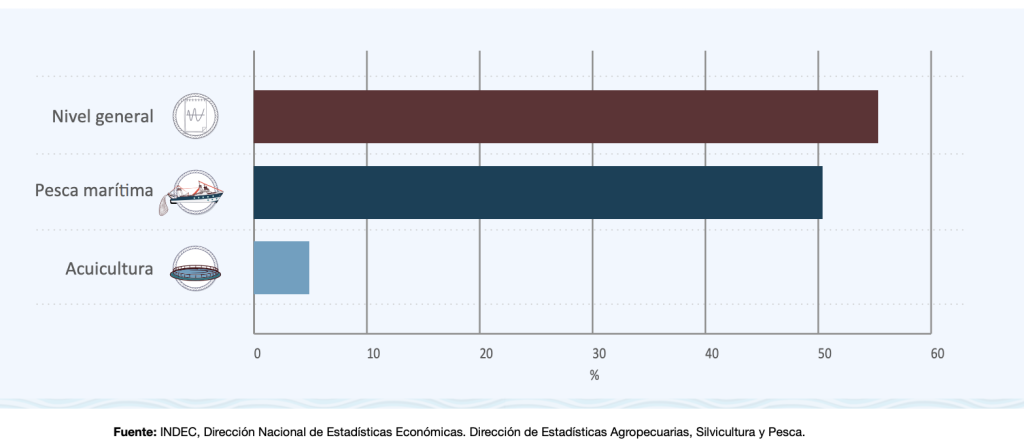 Dentro del sector pesquero, la pesca marítima fue el principal motor del crecimiento, con un aumento interanual de 57,7% en septiembre, mientras que la acuicultura —actividad que incluye el cultivo de especies como trucha o pejerrey— registró una suba de 39,1% respecto al mismo mes del año anterior.