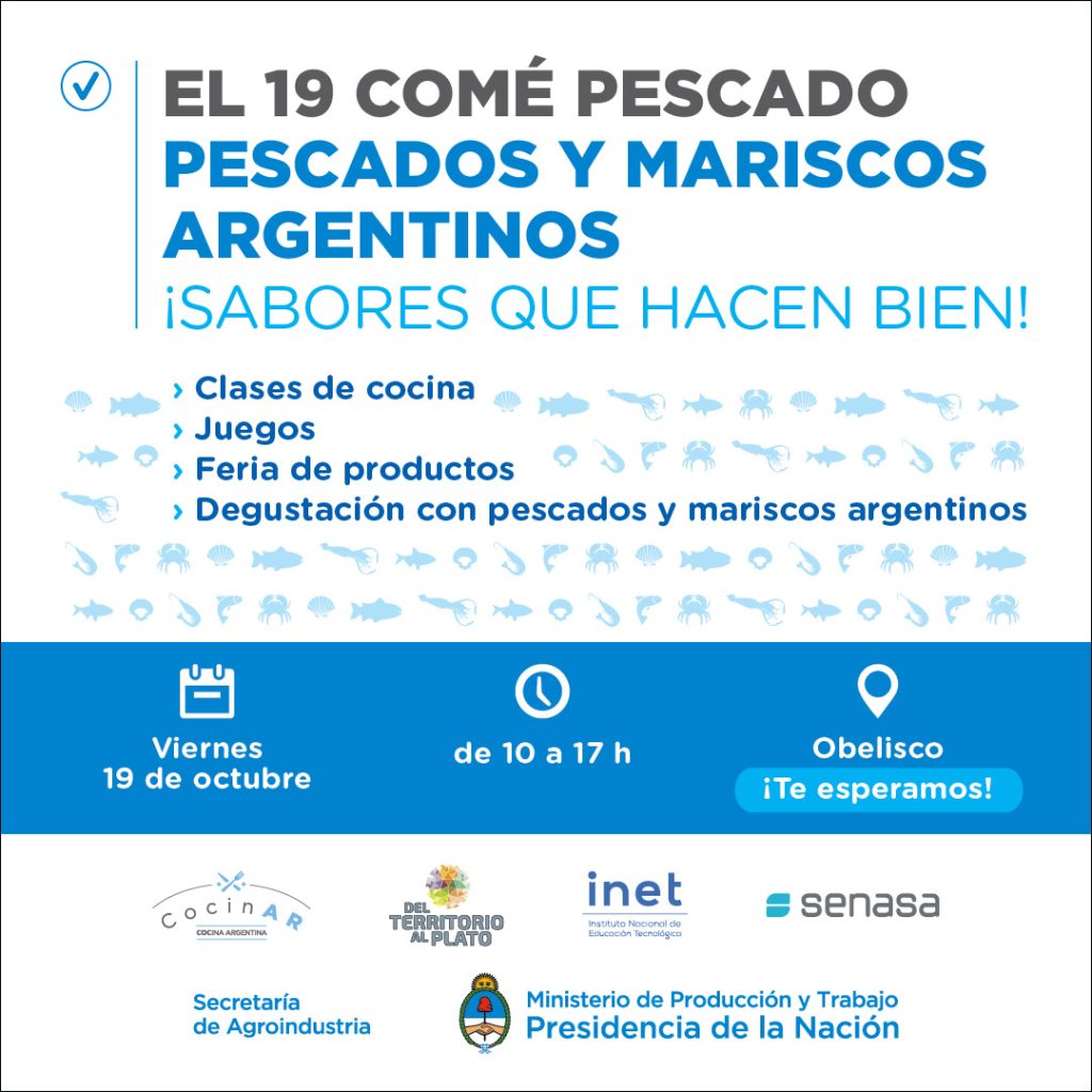 Como parte de la campa帽a iniciada por la Secretar铆a de Agroindustria para incentivar el consumo de pescados y mariscos, este viernes se realizar谩 una actividad de difusi贸n al pie del Obelisco, en Capital Federal.