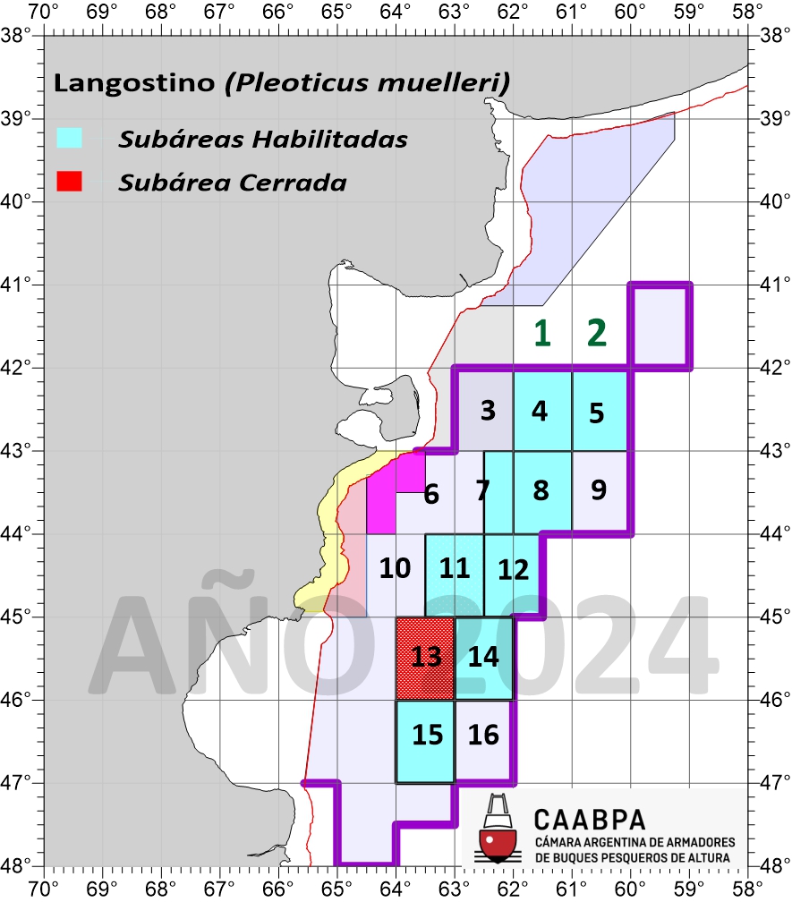 Después de cuatro dias efectivos de pesca iniciados el 18 de julio a las 0700hs y donde 24hs la flota de buques afectados a la prospección debieron permanecer a la capa por malas condiciones de mar y viento en superficie, se decidió la apertura de la subárea 8 por presentar importante concentración de langostino de calidad comercial L2-L1, habilitada hoy a las 0700hs.