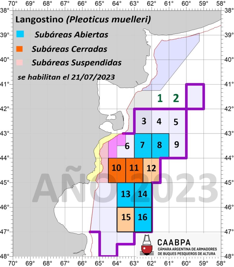 Las autoridades tomaron tal determinación a partir de los resultados favorables sobre los principales indicadores biológicos de la citada prospección, que fueron informados por el Instituto Nacional de Investigación y Desarrollo Pesquero, y que recomiendan se disponga la habilitación a la pesca comercial de Langostino en las subáreas 7, 8 y 14 como hemos citado, la cual dio comienzo este sábado a las 7 de la mañana.