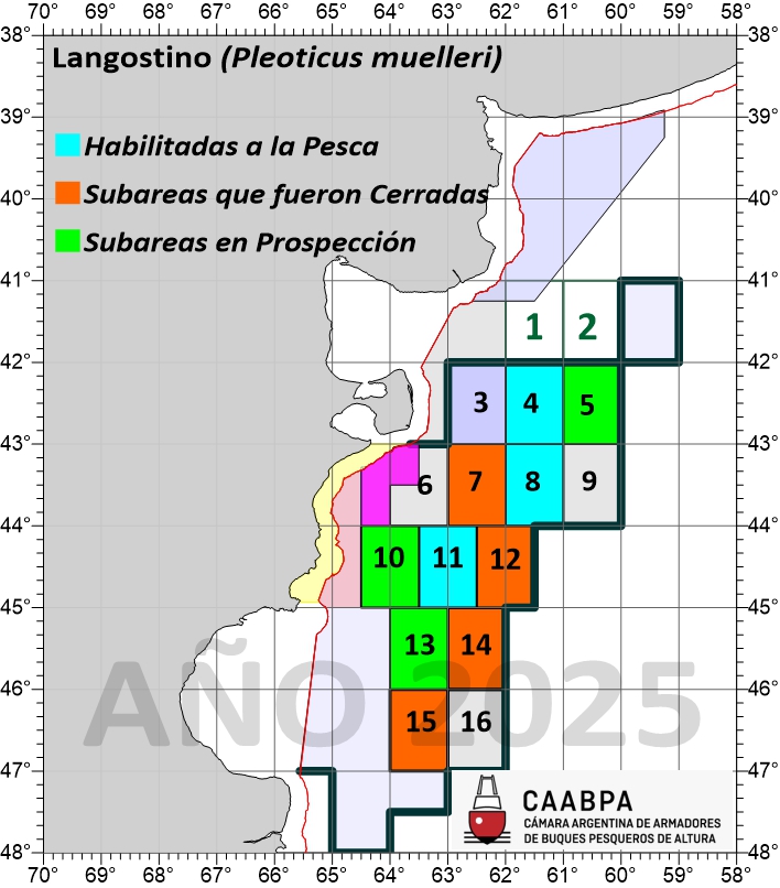 En paralelo, y en cumplimiento de lo establecido en el Acta CFP Nro. 26/2025, se habilitó la prospección de langostino en las subáreas 5 y 13 de la Zona de Veda Permanente de Juveniles de Merluza. Estas operaciones se realizarán bajo los protocolos técnicos del INIDEP y en el marco de la Resolución CFP Nro. 7/2018, con la finalidad de evaluar la factibilidad de futuras aperturas comerciales.