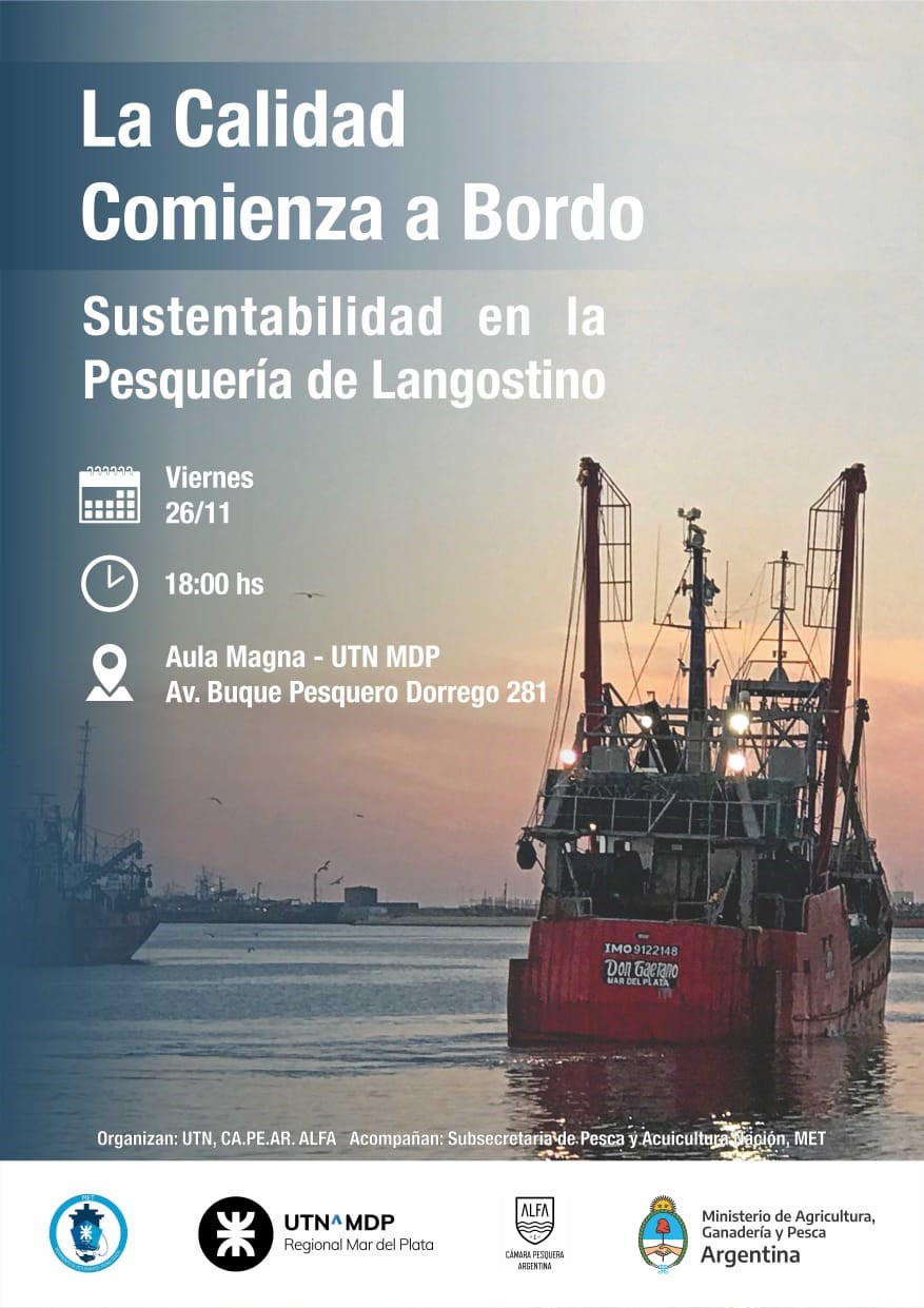 Una buena ocasión para conocer más sobre la sustentabilidad en la pesquería de langostino, será la jornada a llevarse a cabo el viernes 26 de noviembre desde las 18 en el Aula Magna de la UTN Regional Mar del Plata.