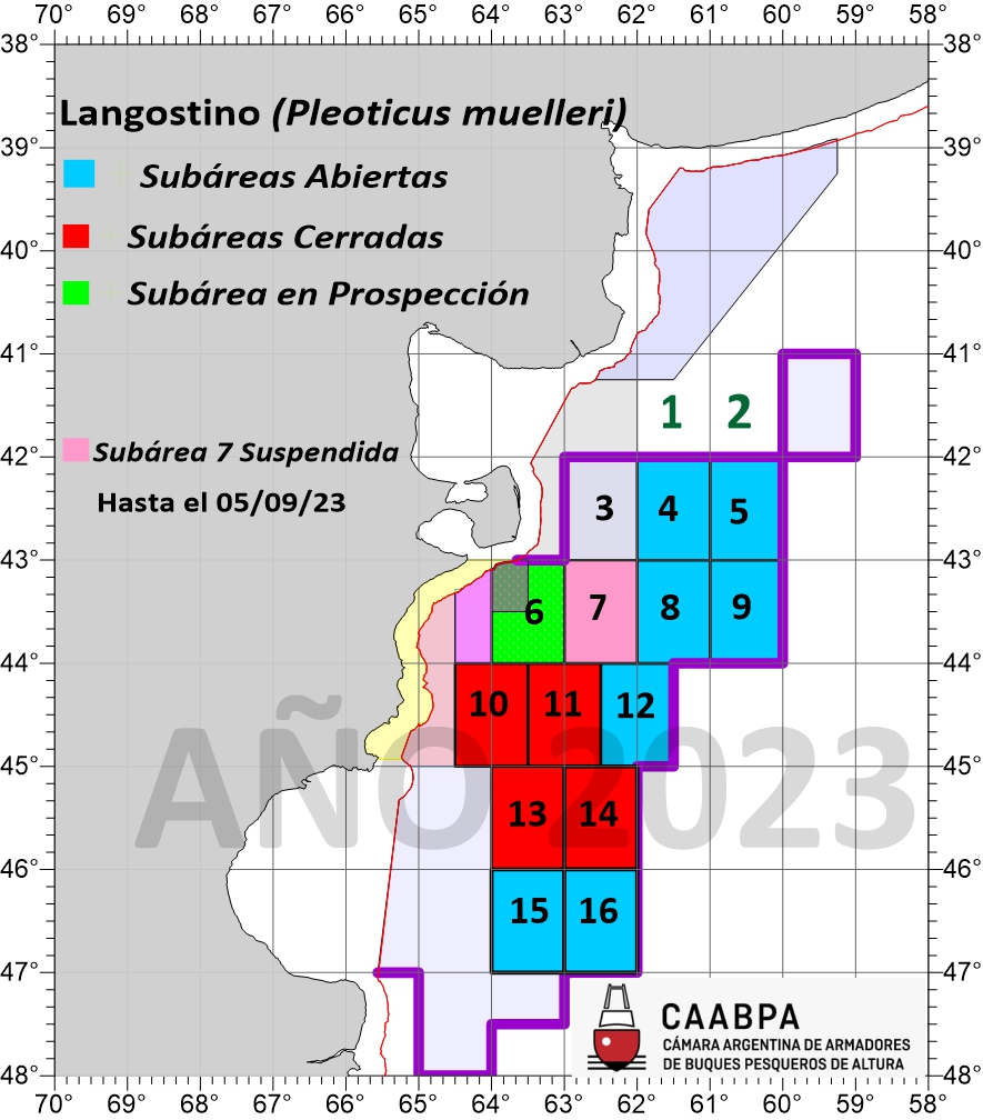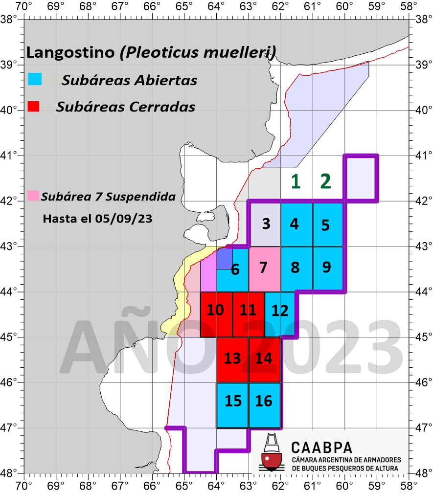 se ha dispuesto la habilitación a la pesca comercial de Langostino (Pleoticus Muelleri) en la Subárea N° 6, a partir de este momento.
