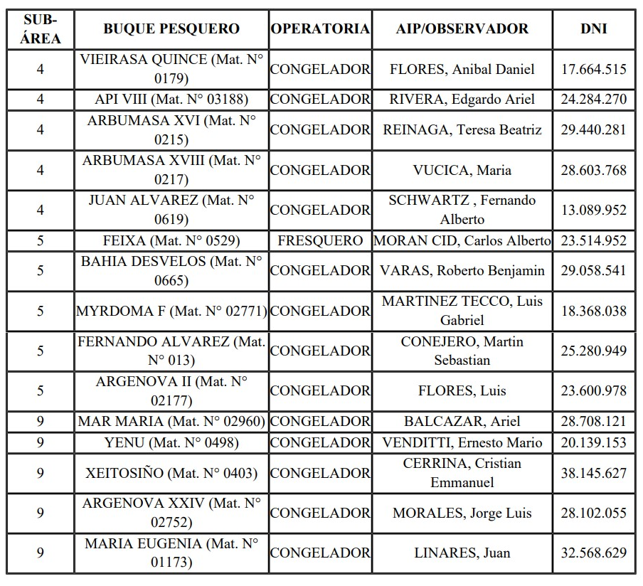 Estos buques fueron designados a causa de contar ya con Asistentes de Investigación Pesquera y/u Observadores/as a Bordo, al momento del inicio de la presente Prospección ahora postergada.