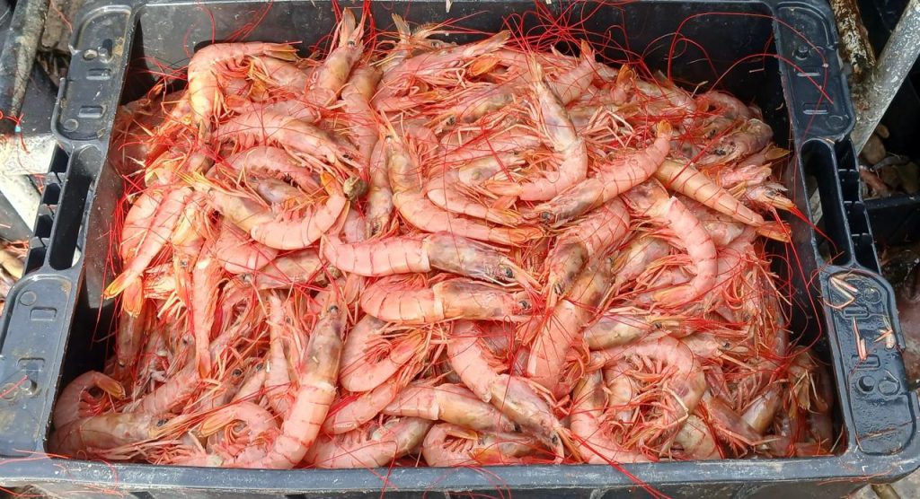 En tanto el BP Marlene del Carmen descargó ayer en Camarones 4600 cajas de un langostino parejo con preponderancia L2, como se ve en la siguiente fotografía.