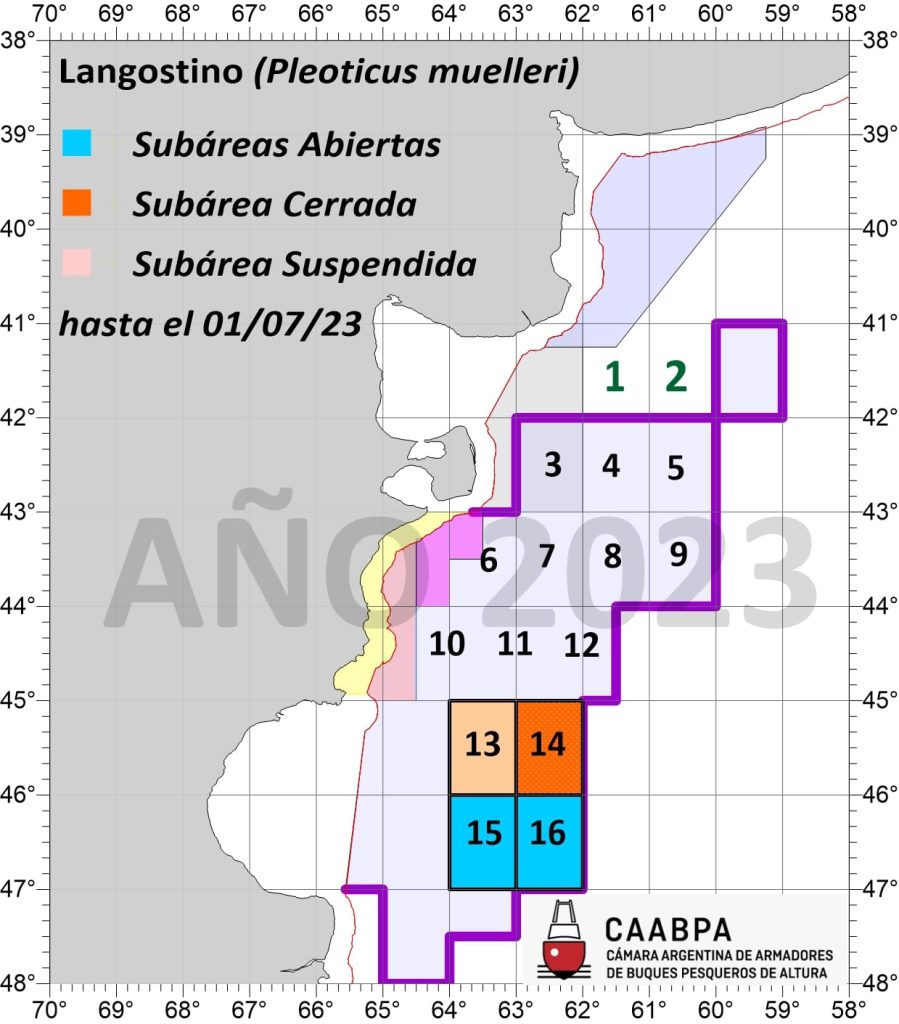 En las primeras horas de este viernes la Dirección Nacional Coordinación y Fiscalización Pesquera informó el cierre de una de las subáreas para la pesca de langostino dentro de la ZVPJM en aguas nacionales.