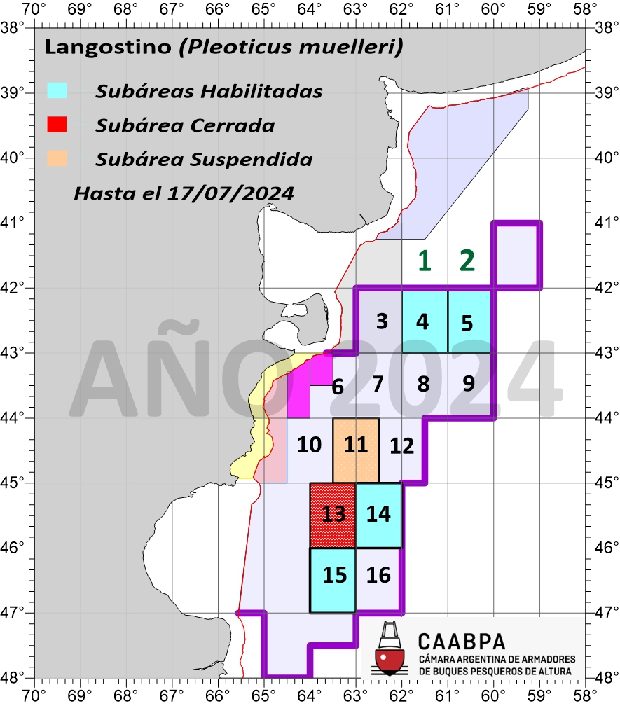 El INIDEP ha constatado que en la Subárea 11, delimitada por las latitudes 44° y 45°S y las longitudes 63°30´ y 62°30´O, se está capturando una proporción significativa de juveniles, clasificados dentro de las categorías comerciales L4 y menores. Ante esta situación, y siguiendo las recomendaciones del instituto, se ha decidido implementar una suspensión temporal de la pesca comercial de langostino en dicha sub-área por un período de catorce (14) días corridos.