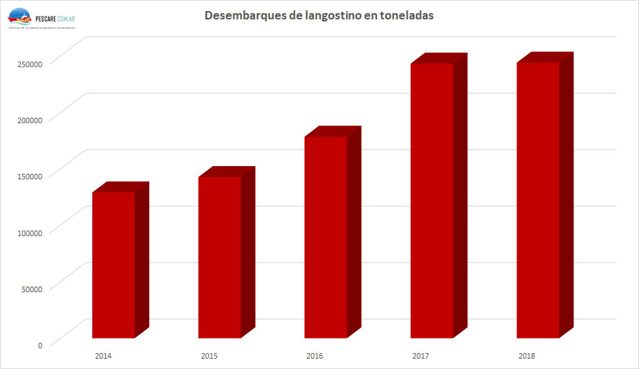 La pesca de langostino alcanzó un nuevo récord de volumen durante 2018. Según revela el registro de desembarques que elabora la Subsecretaría de Pesca de la Nación, durante el año pasado se desembarcaron 244.066 toneladas.