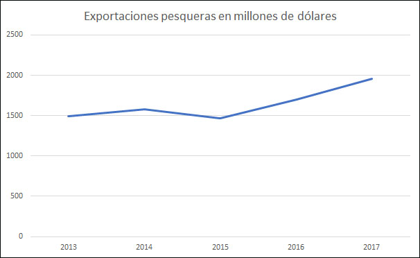 Las exportaciones pesqueras alcanzaron los 1.959 millones de dólares durante 2017