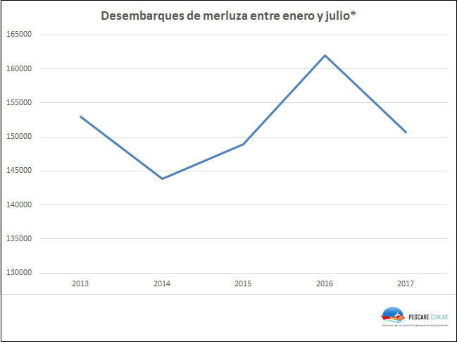 Entre enero y julio se descargaron 150.682 toneladas, un 6,9 por ciento menos en relación al mismo período de 2016. Crecen las capturas en la Zona Común de Pesca.