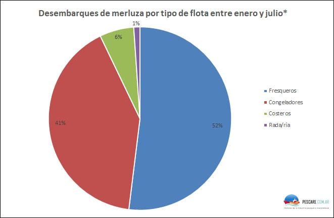 La flota fresquera sigue liderando la participación. Entre enero y julio, este estrato depositó sobre los muelles 76.718 toneladas de merluza, equivalentes al 52 por ciento del total.