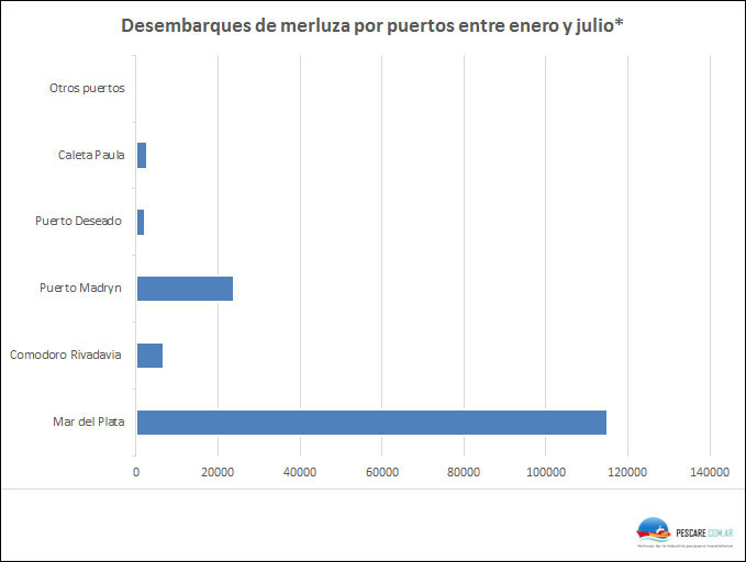 Al repasar la distribución por puertos, se advierte que Mar del Plata ratifica su liderazgo. La estación marítima local recibió durante los primeros siete meses del año 115.032 toneladas. La cifra alcanza el 72 por ciento del total desembarcado.