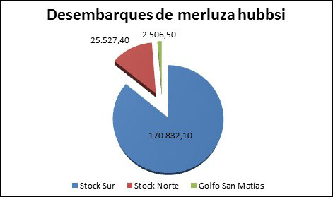 El volumen se conforma con 170.832 toneladas provenientes del Stock Sur, localizado por debajo del paralelo 41°; 25.527 derivadas del Stock Norte, que mejora su rendimiento; y unas 2.506 capturadas en aguas del Golfo San Matías.