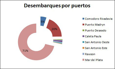 En cuanto a la distribución por puertos, Mar del Plata se quedó con el 71 por ciento, equivalente a 141.940 toneladas. Detrás aparecen Puerto Madryn, con 39.103; Comodoro Rivadavia, con 10.493; y Caleta Paula, con 3.523, entre otras terminales.