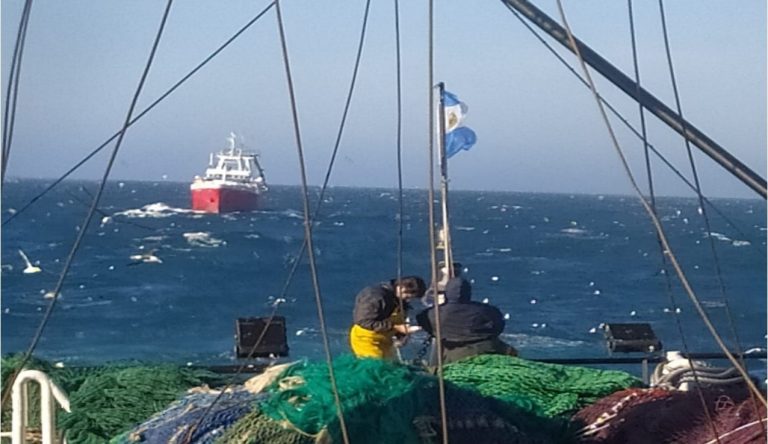 Como si esto fuese poco, para un fin de semana plagado de emociones encontradas, con vientos moderados a fuertes en la zona de pesca de merluza, al Este de BahÃa Camarones a unas 160 millas náuticas, fuera de la ZVPJM en lat.45°S y long.62°W, el buque congelador Carolina P, quedaba sin propulsión y merced a los vientos y olas en un mar complejo en esas latitudes como es el Atlántico sur. Ahà nuevamente surge el corazón. El joven capitán del Buque congelador Beagle I, sin dudarlo, siendo el pesquero más cerca del lugar a 3 horas de navegación, recurre a su ayuda. Remolcando un buque de 1600Tn de desplazamiento y 74m de eslora rumbo a Puerto Madryn donde después de 24hs de navegación, ingresará a puerto, recién al otro dÃa.