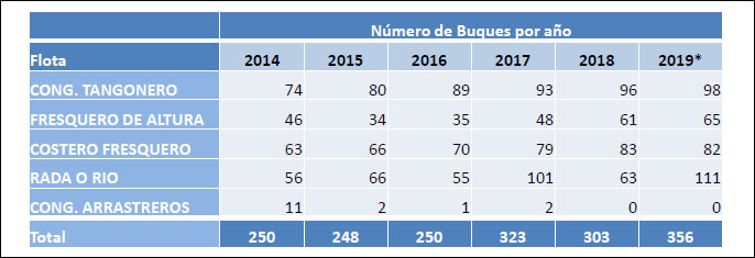 Como dato saliente, se advierte el crecimiento en el número de barcos que declaró haber pescado langostino durante 2019. Fueron 356 buques contra los 303 del año pasado o los 250 registrados en 2014. En cinco años el crecimiento fue del 42,4 por ciento.