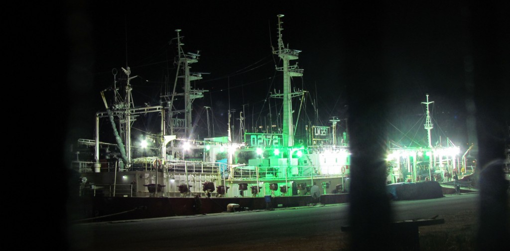 Desde las 20, los poteros amarrados tanto en Escollera Norte como en la Terminal 2 del puerto local encendieron algunas de sus luces, buscando atraer la atención de las autoridades.