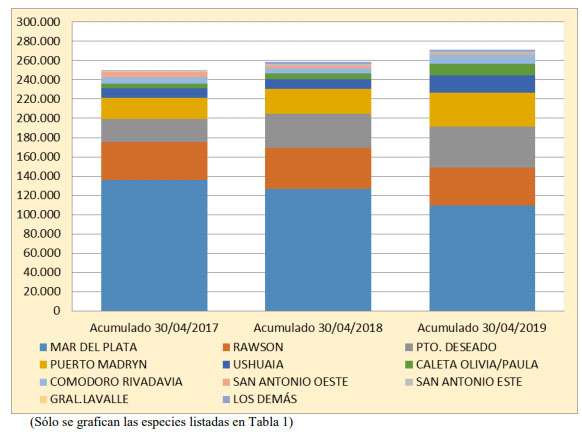 El puerto de Mar del Plata resignó algo de volumen durante los primeros cuatro meses del año. Hasta la estación marítima local llegaron 109.661,8 toneladas de pescados y mariscos entre enero y abril, lo que representa una baja del 13,2 por ciento respecto a igual período de 2018.