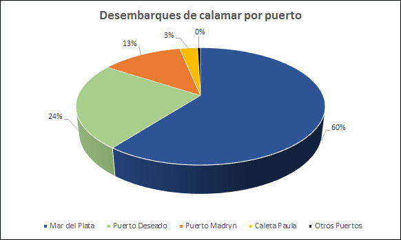 Detr谩s aparecen las terminales patag贸nicas que pese a la cercan铆a con el stock sur, el de mayor volumen, no lograron opacar el liderazgo de Mar del Plata. En esa lista se anotan Puerto Deseado (22.823 t.), Puerto Madryn (12.082 t.) y Caleta Paula (2.660 t.), entre otras.