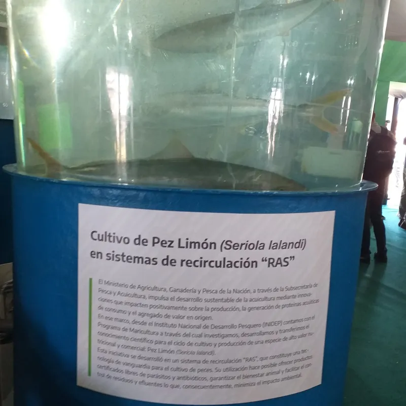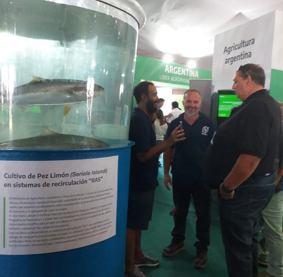 Precisamente en referencia a esta última actividad, pudimos dialogar con el Lic. Mariano Spinedi, jefe del programa de maricultura del INIDEP, con quien pudimos interiorizarnos sobre lo que fue la nota destacada de la Expo Agro: el Pez Limón.