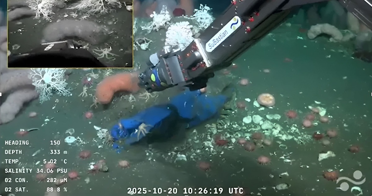Sin embargo, no todas las imágenes fueron alentadoras. El SuBastian registró a 333 metros de profundidad bolsas plásticas y desechos metálicos dispersos entre los cañones submarinos. La escena provocó indignación entre los científicos, quienes decidieron retirar los residuos para evitar que interfieran en el equilibrio ecológico del entorno. Este hallazgo refuerza una advertencia ya conocida pero aún vigente: la huella humana alcanza incluso los confines más remotos del océano, donde todos los participantes en el mar argentino son responsables.