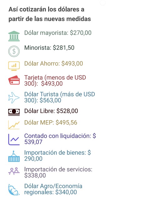 -Equiparan el Dólar Solidario (30% IMP PAIS + 35% P. Gcias) al Dólar Tarjeta (30% IMP PAIS + 45% P. Gcias). Encarecen 10% el Solidario. -Mantienen el dólar Qatar (30% IMP PAIS + 45% P. Gcias + 25% P. Bs. Ps.)