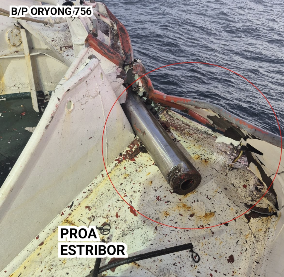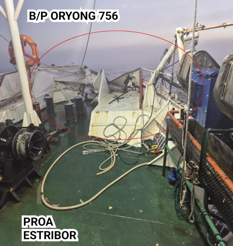 En un nuevo episodio de colisión dentro de la Zona Económica Exclusiva Argentina (ZEEA), el Buque Potero Espadarte (Mat. 02048) ha reportado un abordaje con su par, el potero Oryong 756 (Mat. 02092). Afortunadamente, no se registraron víctimas ni ingreso de agua al casco, aunque los daños materiales son significativos.