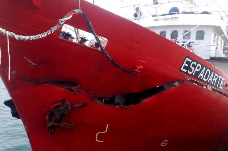 La información preliminar indica que el impacto causó daños en un pañol ubicado entre la cubierta principal y la superior del BP Espadarte, sobre la línea de flotación, con una afectación aproximada de 1.5 metros de largo por 0.50 metros de ancho, actualmente cubierto por un tapa rumbo, generó una ruptura en el casco en la amura de babor.