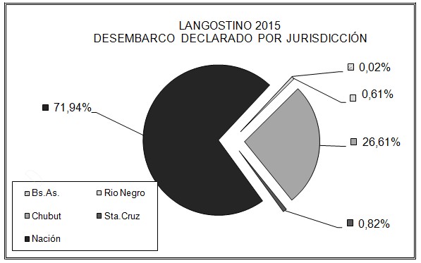 En cuanto a las capturas 2015, conviene tener presente que el 72 por ciento fueron obtenidas en aguas de jurisdicción nacional, el 28 por ciento provinieron de Chubut (26,61 por ciento), Santa Cruz (0,82 por ciento) y Río Negro (0,61 por ciento).