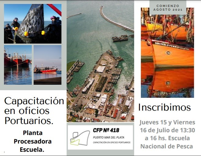 En una importante iniciativa, de generar los cuadros para futuras demandas y especializaciones en labores referidas al entorno portuario, el Consorcio Regional Puerto de Mar del Plata y la Escuela Nacional de Pesca Comandante Luis Piedra Buena abre la inscripción a quienes deseen capacitarse en oficios portuarios y pesqueros en el Centro de Formación Profesional Nro.418.