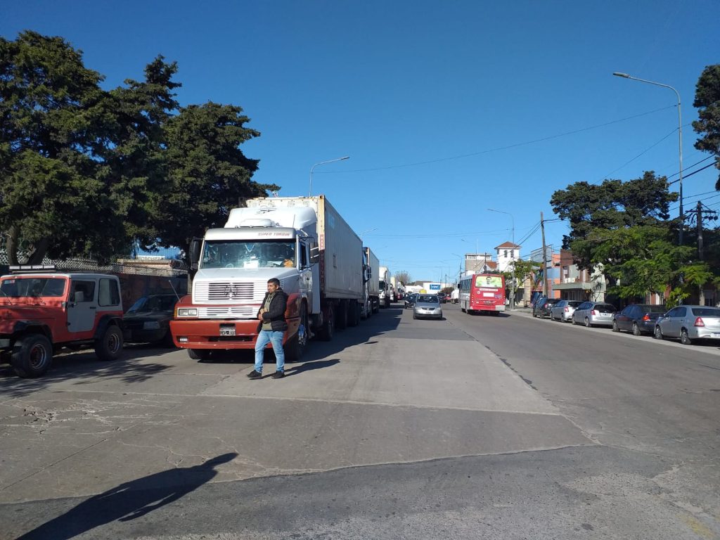 Hasta pasado el mediodía no permitían el ingreso vehicular de camiones como así tampoco vehículos de menor porte. Quienes debían ingresar lo tuvieron que hacer caminando como los marineros que están embarcados pero aún no de salida.